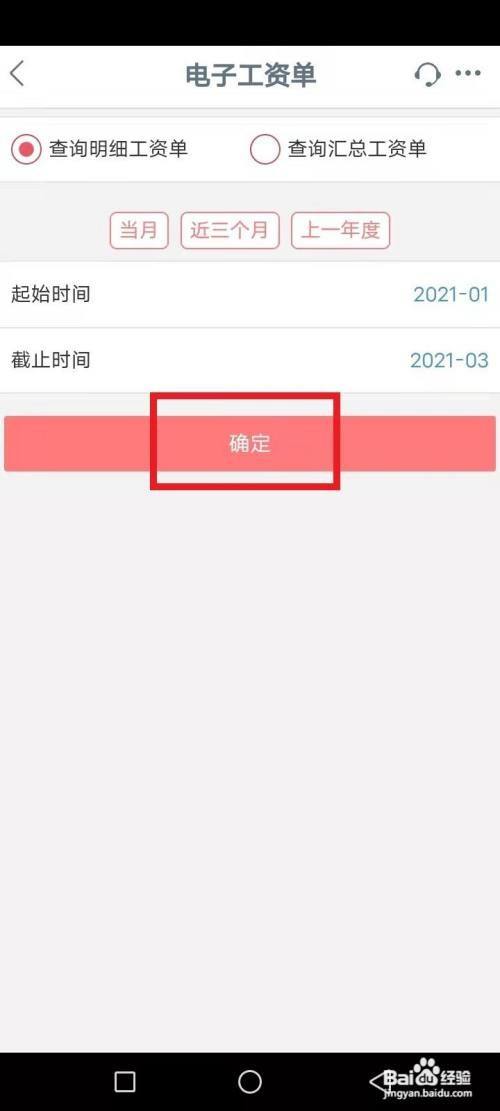 选择需要的个人工资明细月份,点击查询,如图红色文本框: