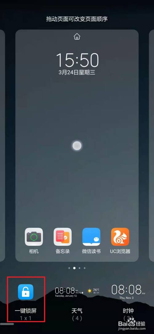 介绍如何在华为手机上开启一键锁屏小工具的操作流程。