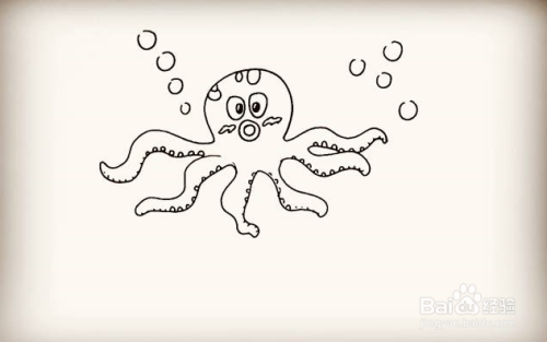 章鱼,又称石居、坐蛸、石吸、望潮、死牛,属于软体动物门头足纲八腕目。章鱼有很好的自我保护的能力,它将水吸入外套膜,呼吸后将水通过短漏斗状的体管排出体外。大部分章鱼用吸盘沿海底爬行,但受惊时会从体管喷出水流,喷射的水力强劲,从而迅速向反方向移动。遇到危险时会喷出墨汁似的物质,作为烟幕。今天我们就赖来画一只可爱的章鱼吧。