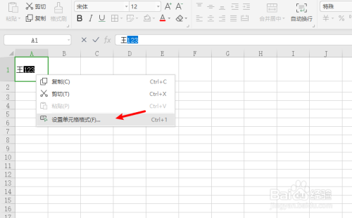 接着鼠标右键打开菜单选择设置单元格格式选项;