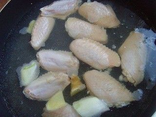 做法详细:先把鸡翅洗干净,然后锅里倒入水,放入葱段生姜片煮沸,然后捞出来沥干
