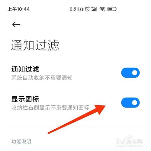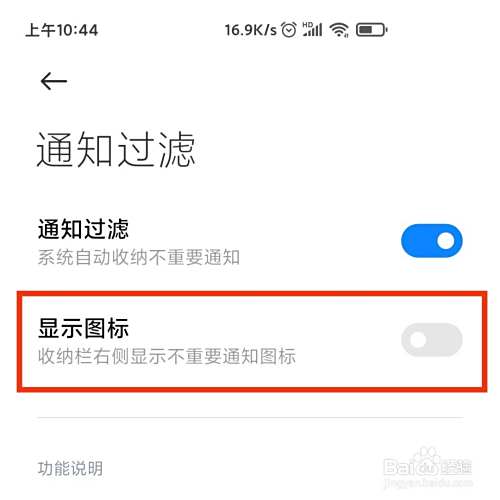 最后显示图标的滚轮显示按键颜色,就可以开启不重要通知的图标了。