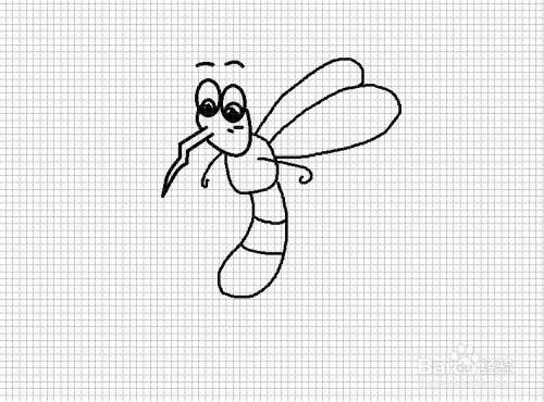 第六步是绘画出蚊子的翅膀。