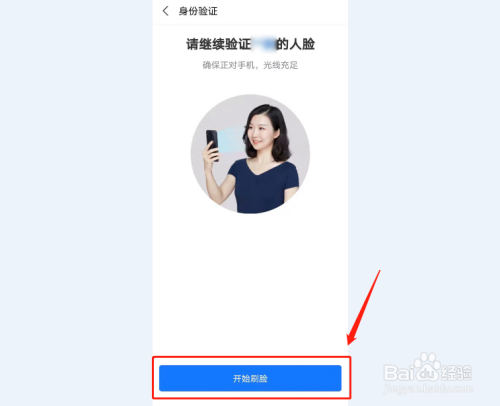 然后点击页面中的“开始刷脸”按钮,继续验证人脸;