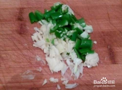 把锅内的油烧开,然后再盛出一点点放一边留着装碗的时候使用。然后把辣椒和蒜加入到油内炒香。再把茼蒿加入进去炒。