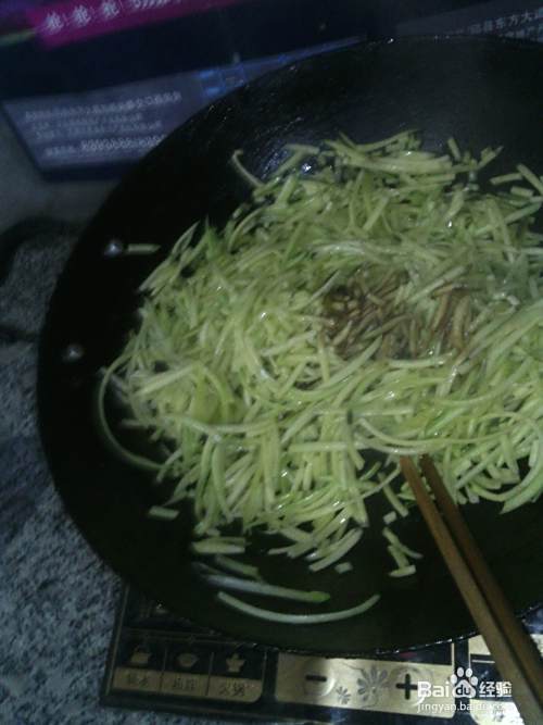 第五步就是等菜快炒熟了,倒入少量的白醋即可,直到炒的北瓜变了颜色,就可以盛碗里了。
