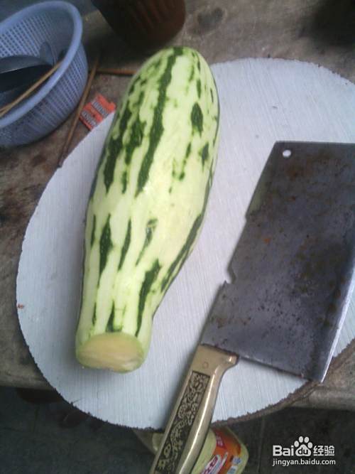 北瓜的皮一般都很硬,很不干净,所以首先需要大家把北瓜的皮削掉,并洗干净,如图所示。