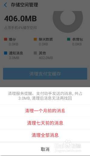 点击清空,就可以清空所有聊天记录了,作为一个支付工具,这些聊天记录没太大必要保留的