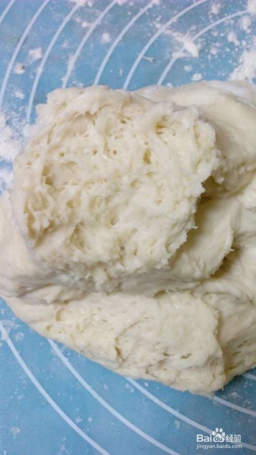 200g面粉加入水,酵母,糖,盐,牛奶面包机揉面,面团揉至扩展状态加入黄油,揉五分钟左右即可,发酵两倍大。气孔如图