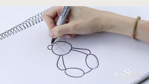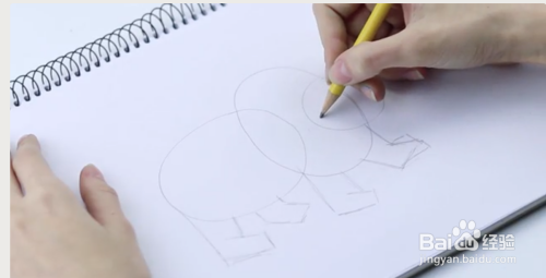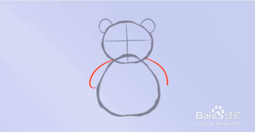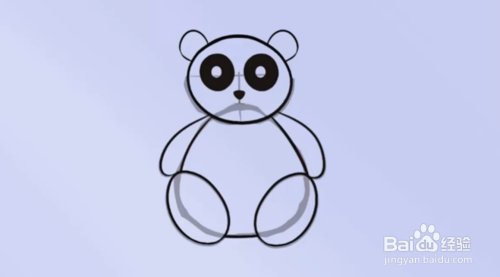 画两条弧线代表前腿,画两个椭圆代表后腿。我们画的是卡通熊猫,所以不用画得太精确。