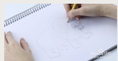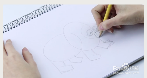 然后画五官。画两个圆圈作为眼睛,用弧线画出鼻子和嘴,再擦除草稿中多余的线。