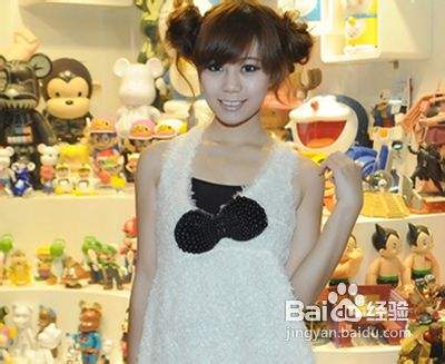 两个小小的发髻盘在两侧,可爱风趣,像极了小女孩的天真活泼,同时也给人一种脸缩小的视觉效果,加上侧分的斜刘海,更显清新纯洁。