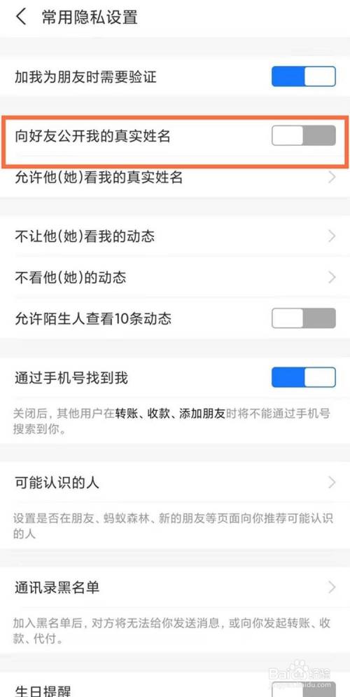 4、将向好友公开我的真实姓名的开关关闭即可。