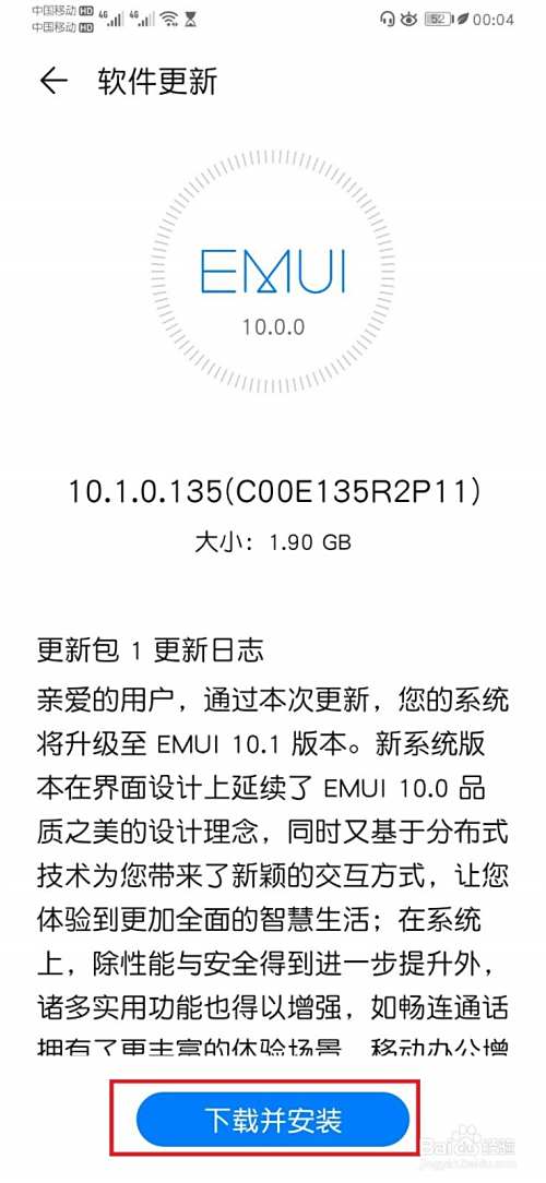 进入软件更新页面,点击【下载并安装】即可。如下图所示。