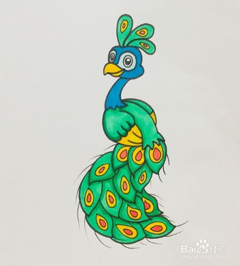 最后给孔雀涂上颜色,一只又简单又漂亮的孔雀就画好了。