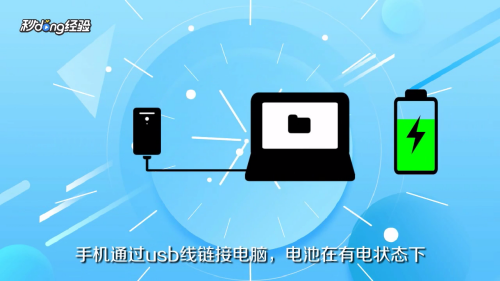 4手机通过USB线连接电脑,电池在有电状态下看是否可以连接成功。