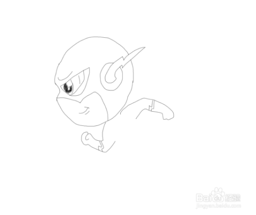 在画好的头部下面画出闪电侠的两只胳膊及手部,如图所示: