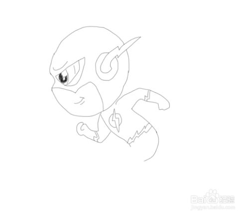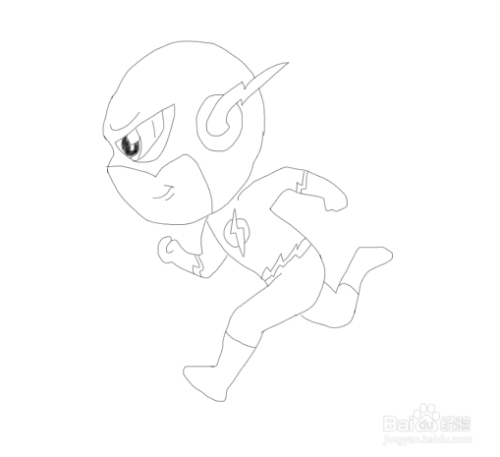 最后在身体下面画出闪电侠的两条奔跑的腿,这样我们的闪电侠就画好了,如图所示: