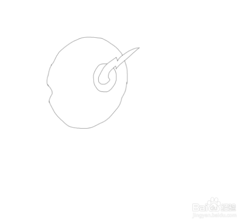 在耳朵的基础上画出闪电侠的头部轮廓,在前面画出鼻子图形,如图所示: