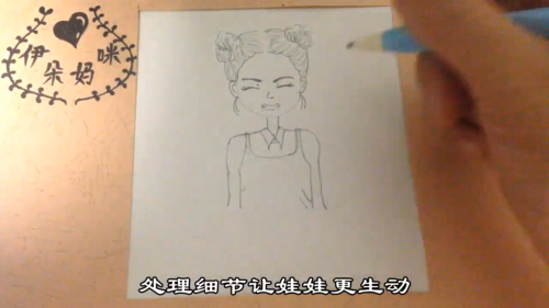 画出少女的头发。