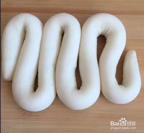 把发好的面团揉成圆条状,摆放成如下图的形状。见下图