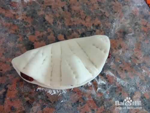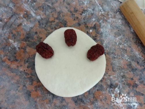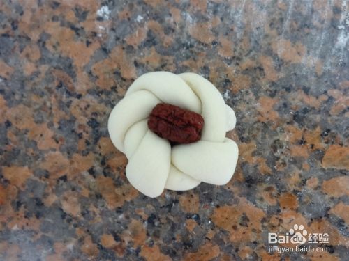 最后把接头放在底下,顶上中心处放上一颗红枣。