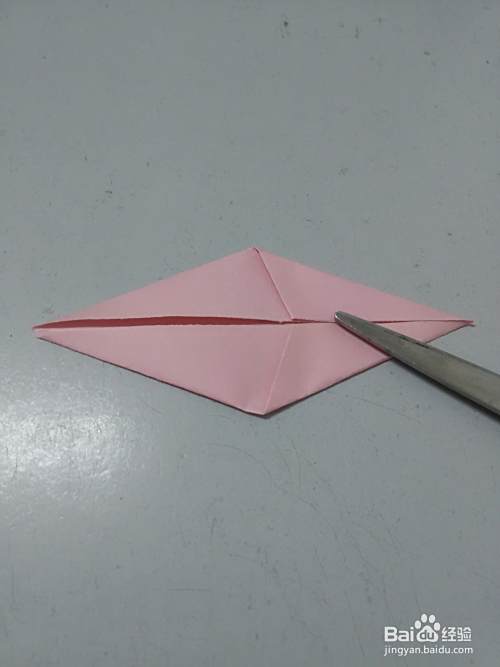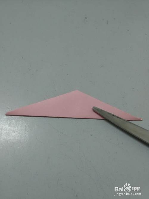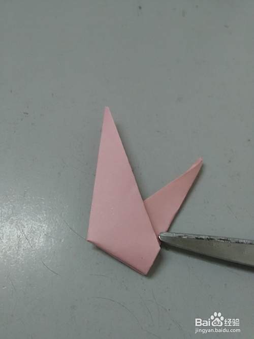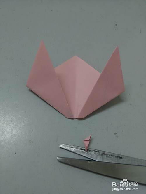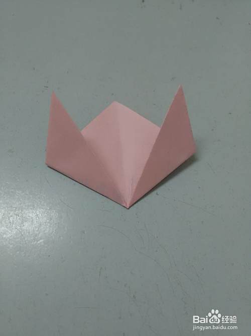 把三角形左右两个角向上斜着折一下,花朵就折好了。