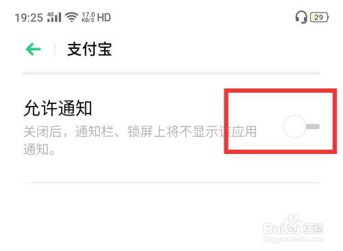 在界面的上方有“允许通知”选项。此时,横杠的颜色为绿色,我们只需要点击一下让它变成灰色就可以了。