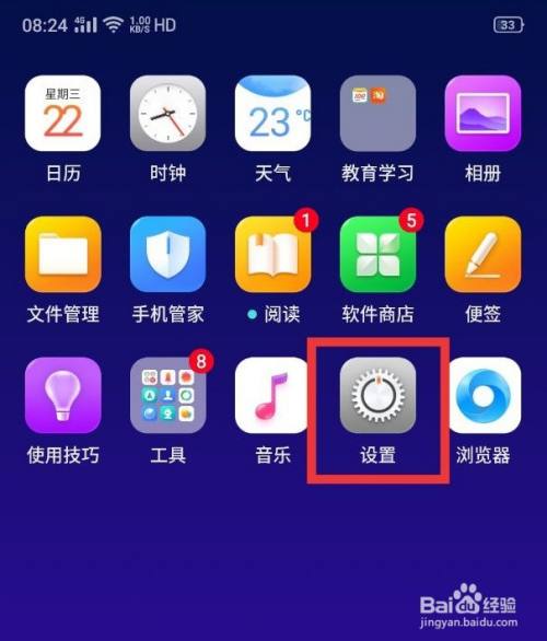 打开我们的手机,在界面中找到“设置”按钮,并选择打开。