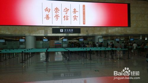 通过安全检查:根据机场地面导航图找到机场安检入口,安检时需要出示身份证及登机牌,然后根据工作人员的引导进行相关操作(打火机等易燃易爆物品不允许通过,电脑等只能作为随身行李,不允许托运)