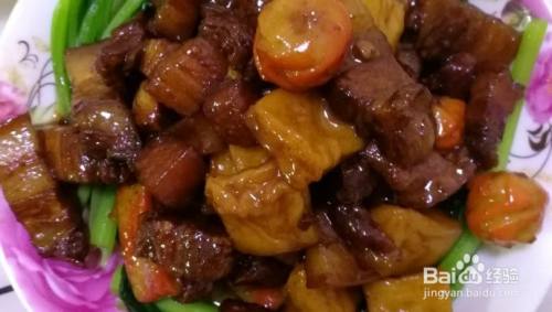 毛巾包住内胆边,再倒回锅中,开中火后,放入适量冰糖,待冰糖融化,加入一小撮盐,翻炒片刻就可出锅。这是正统的红烧肉就做好了。加入海鲜丸子娃子她爹爱吃,其实主要还是肉少了。中火加盖闷煮至丸子熟了就好了。