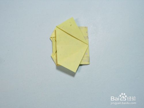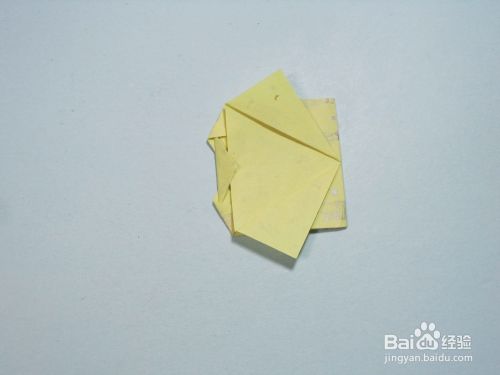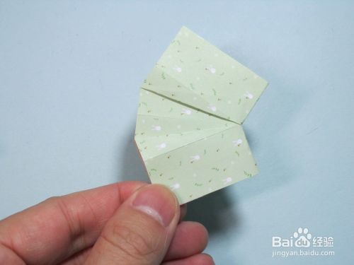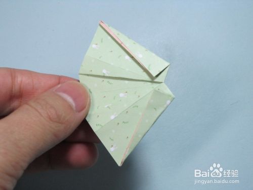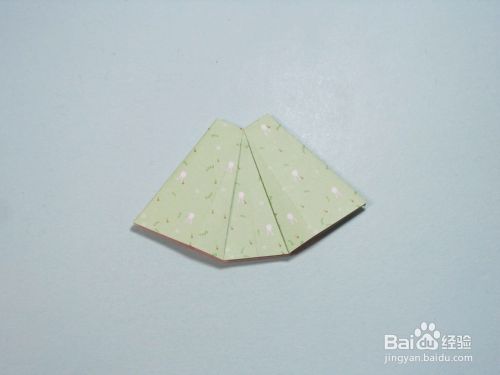 第8步、将翻折过来的部分左侧中间两个角向外翻折,形成两个相同大小的三角形。