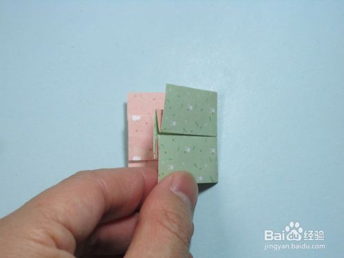 第15步、将左右两边折在一起,对齐。