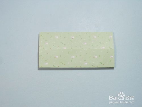 第12步、取出另外一张小正方形纸。上下两边对折,展开,留下折痕。