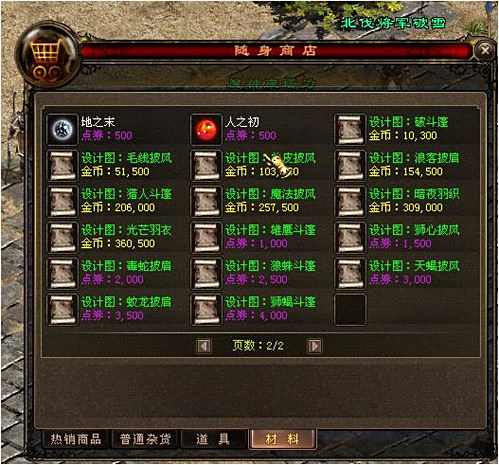 1玩家可以通过随身商店或者小地图的商城,在热销商品与材料页签内买到对应的图纸。