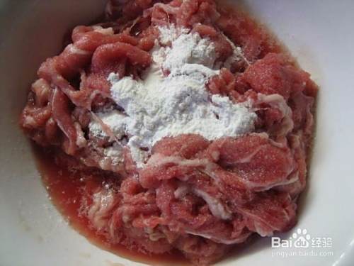 将肉切片,加入适量的苏打粉腌制半小时备用