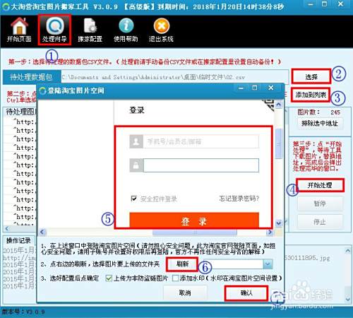 代理商们收到数据包后,还是会上传不了,因为这个数据包描述图片是存放在供应商的图片空间中的,淘宝助理上传会出现“您不能使用他人图片空间中的图片”的问题。那么这个问题可以用大淘营图片搬家工具高级版处理一下数据包,将描述图片一张张提取出来,下载并上传到淘宝图片空间,“上传为非防盗链图片”。如图