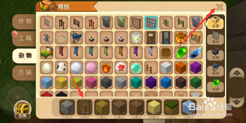 然后我们点击背包,弹出的界面选择建造房子需要的材料。