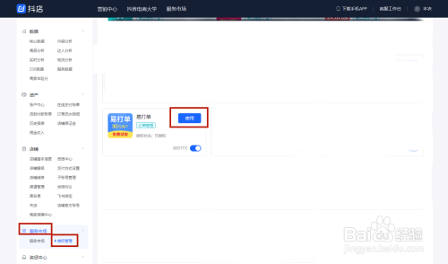 子账号进入抖店商家后台,点击【服务市场】-【授权管理】,点击【易打单】图标即可跳转。