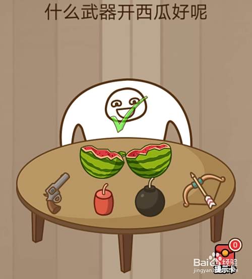 脑力吃鸡大乱斗第10关答案:桌面上的武器都是误导你的,最好用的是用图中人物的头将西瓜撞开,需要撞两次,第一次西瓜会裂开一道口子,第二次西瓜被撞成两半。