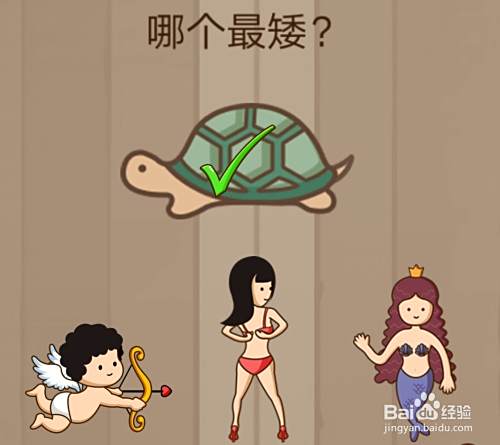 脑力吃鸡大乱斗第7关答案:4个图中很明显乌龟是最矮的,这是一道常规思维题,很容易过关。