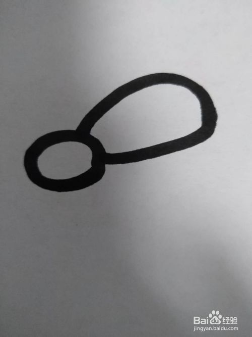 在椭圆右侧下方画出一个扇叶形状,在在椭圆右侧上方扇叶形状中间画一个小椭圆。
