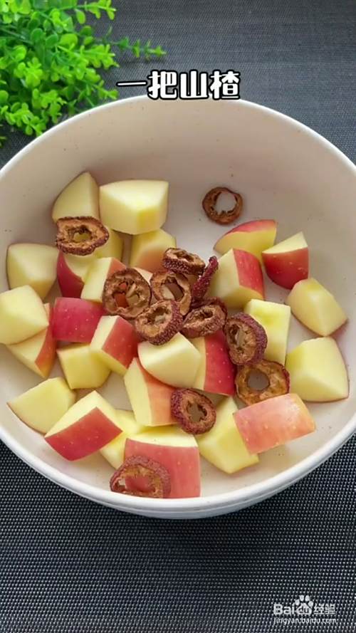 干山楂约30克,苹果2个,红枣8个,冰糖适量