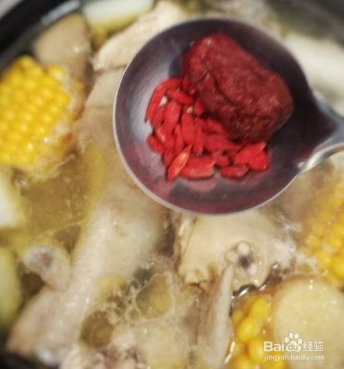放入红枣和枸杞,大火煮开,小火炖2个小时。