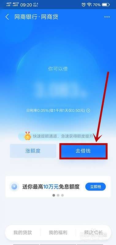 点击网商贷页面中的“去借钱”;