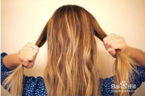 从耳边各取一股发束(可以用卷发棒将发尾烫卷,仅限发尾部分)。