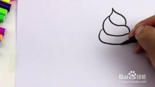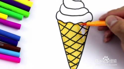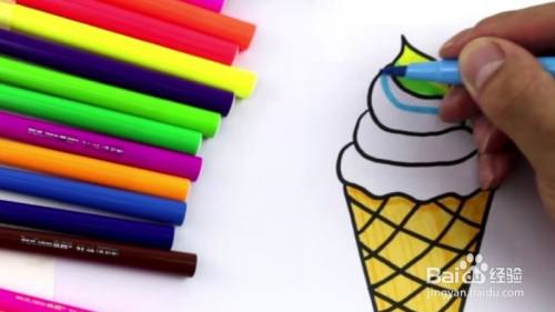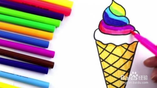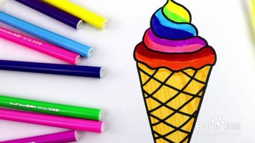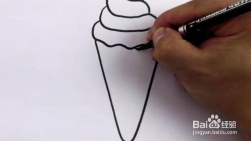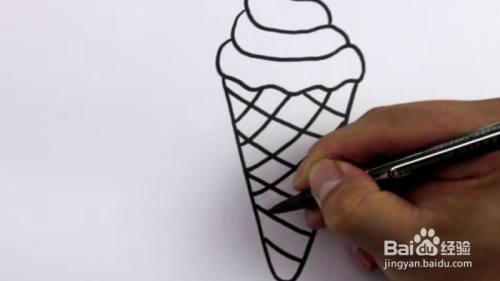 使用黑色水笔勾画出七彩冰淇淋部分;