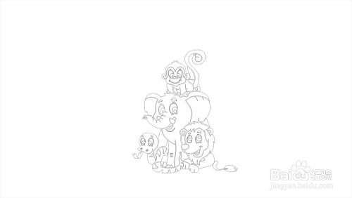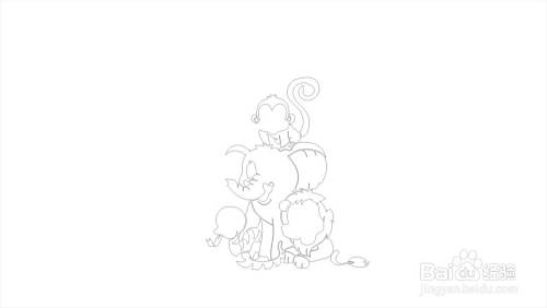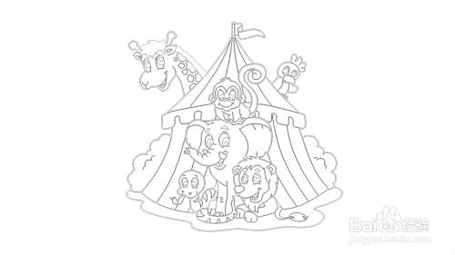 第四步用水彩笔为欢乐马戏团涂上颜色,一幅简笔画完成啦。