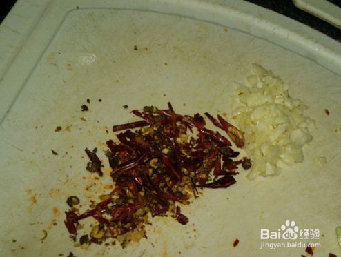 干辣椒和蒜,切末。