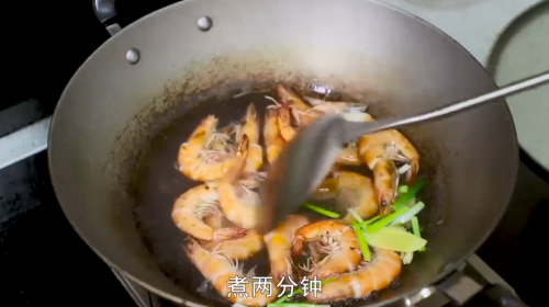 大火烧开,煮两分钟,水煮大虾即可出锅。